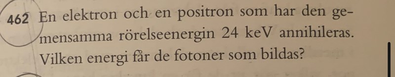 Vilken massa har elektronen respektive positronen? Hur mycket energi motsvarar detta? Hur stor är den samman lagda energin?