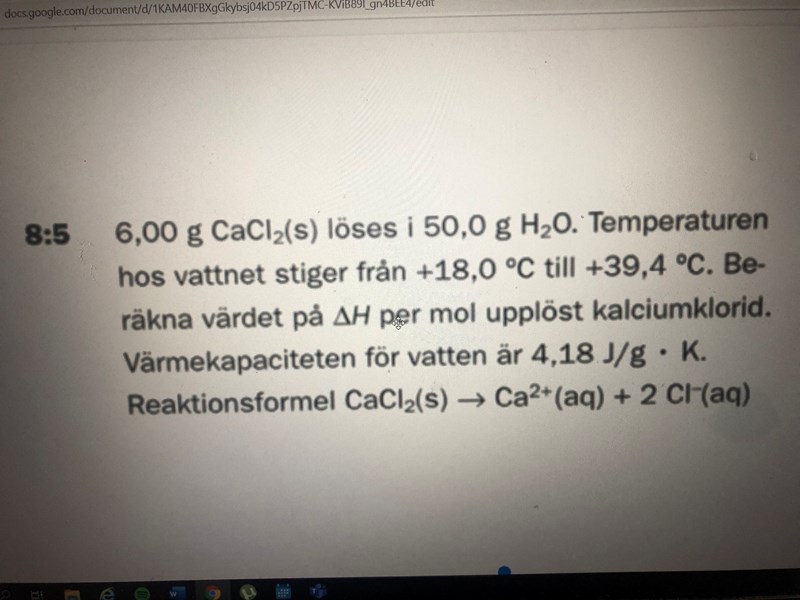 " beräkna värdet på deltaH per mol upplöst kalciumklorid "