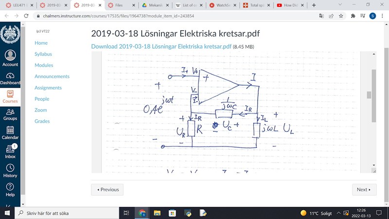 Eftersom Ur är total spänningen bör väl då beräkningen bli Ur - Uc - Ul = 0, att få fram Ur och Uc har jag redan lyckats med. Men beräkningen för Ul är lite konstig i lösningsförslaget vi har fått, där har de skrivit att Ul = Ur + Uc. Det stämmer väl inte riktigt med KVL logiken eller är det jag som missuppfattat det helt?