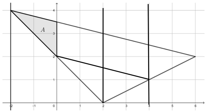 Ja det är snyggt. Det jag syftade på ovan är att triangeln till vänster om x=2 har arean 4A