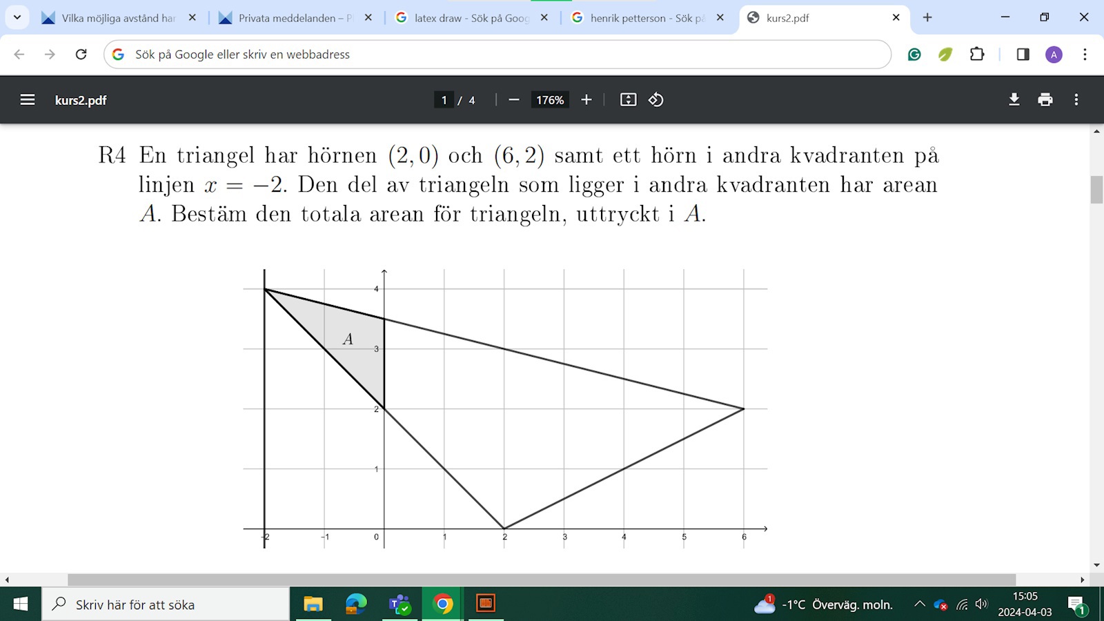 Louis skrev:Ja det är snyggt. Det jag syftade på ovan är att triangeln till vänster om x=2 har arean 4A