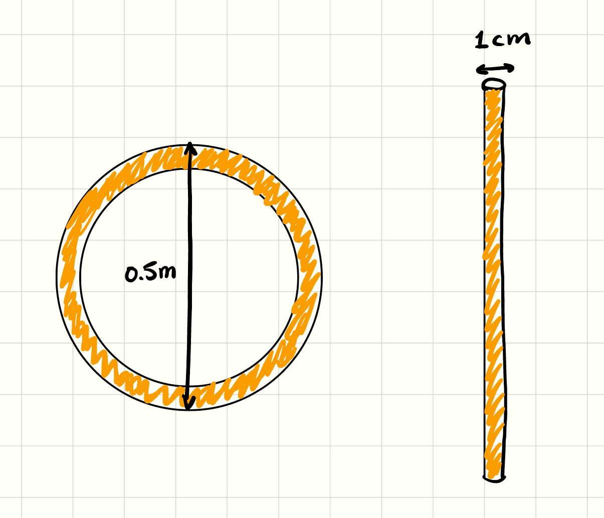 Vet inte om det här förtydligar men de menar såhär, om man "vecklar ut" ringen så får man en koppartråd med diameter 1cm. Ekvivalent med bilden ovan