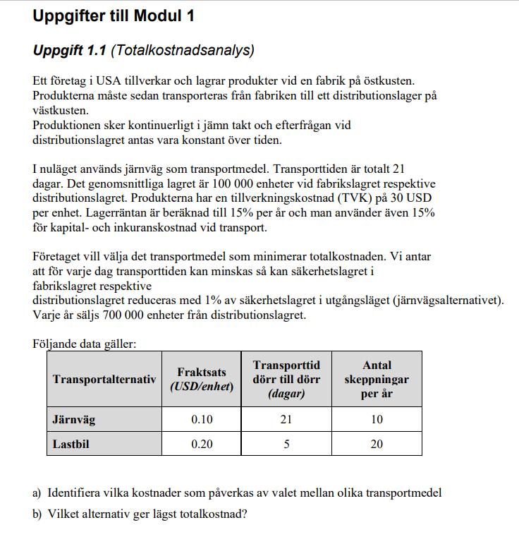 I uppgiftensammanhang så har jag inte sett något relevanta information om man ska ha olika kostnad per produkter när man lagrar dem i transport och distributionslager.