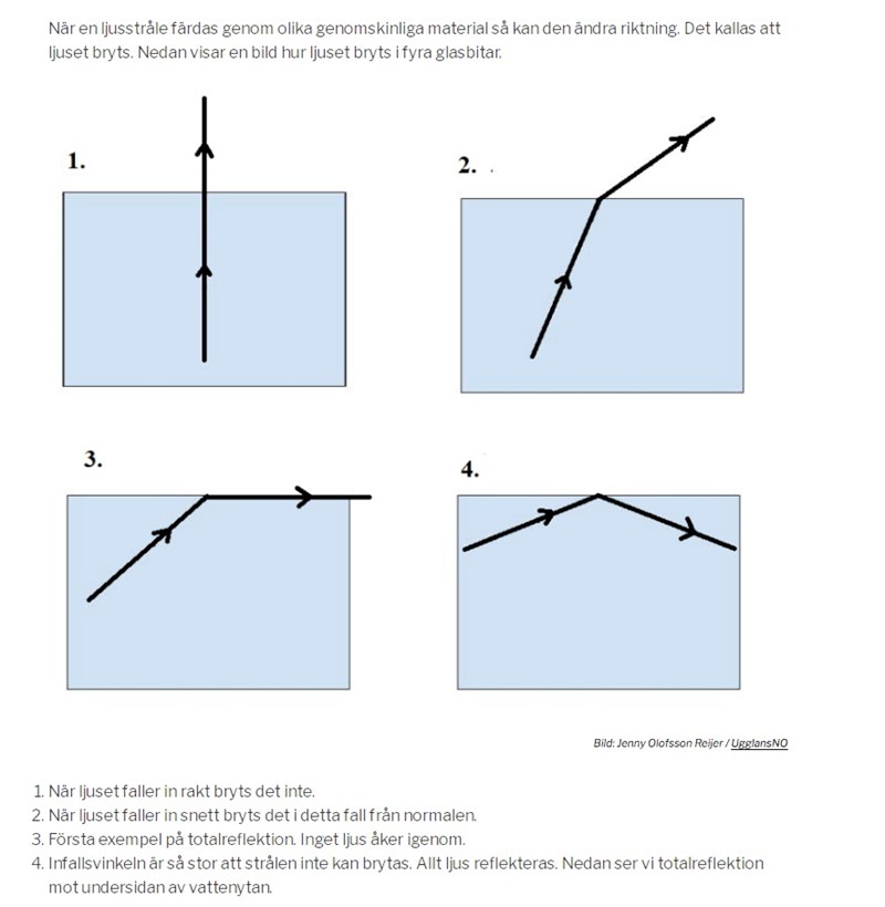 Jag läste lite om totalreflektion på ugglans NO och då står det följande: