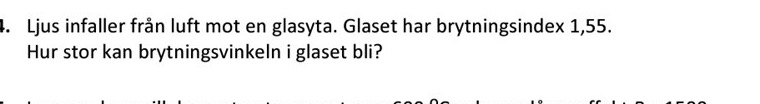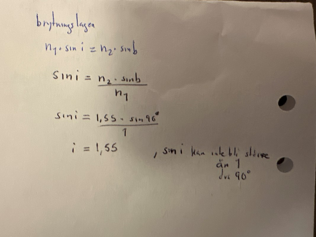 Vid totalreflektion så kan sinb kan max bli 1 , dvs 90 grader så vad ska beräknas?
