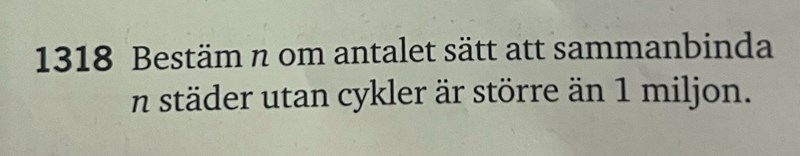 Här är det nog tänkt att du ska testa dig fram och se för vilket värde på n som uttrycket i VL överstiger en miljon. Det är ganska lätt att se att n måste vara större än 8, eftersom 8^6 < 10^6, så det räcker att visa att olikheten gäller för n=9.