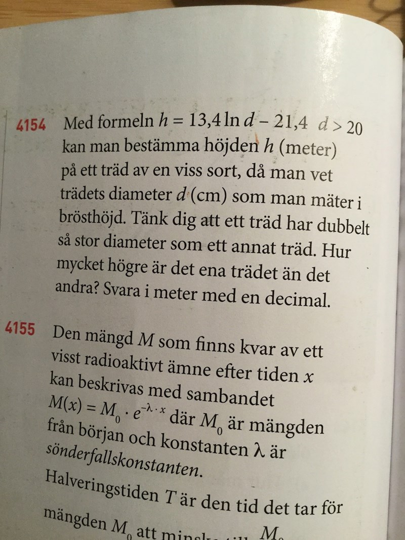 Enligy midellen är trädhöjden en funktion av träddiametern enligt .