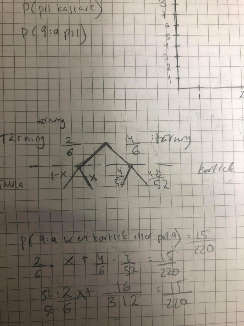 Har du ritat upp träddiagrammet, som du nämner i rubriken? Om ja, lägg upp en bild av det här. Om nej, rita det och lägg upp det.