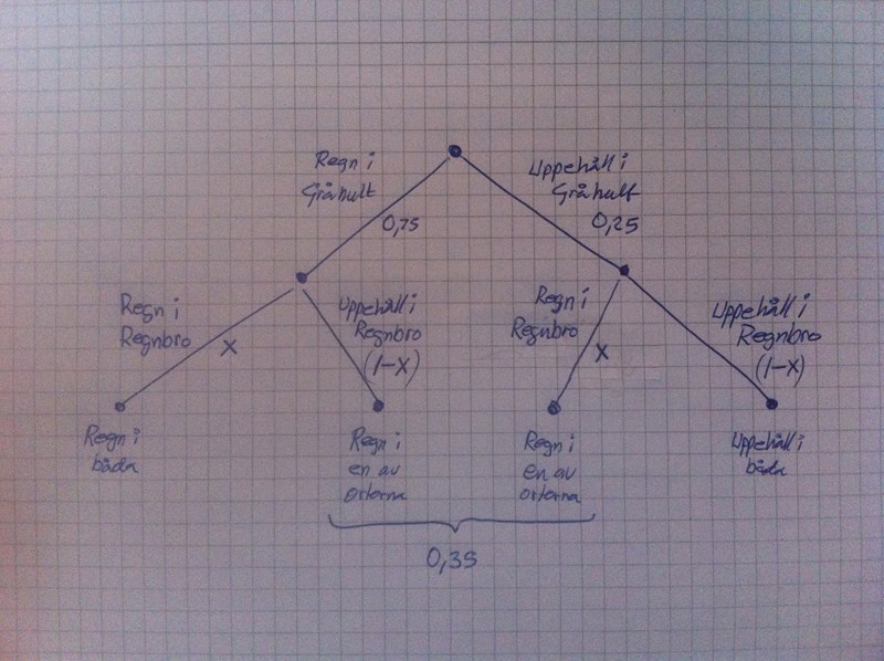 3) Uppehåll i Gråhult och regn i Regnbro Sannolikheten = 0,25 gånger x