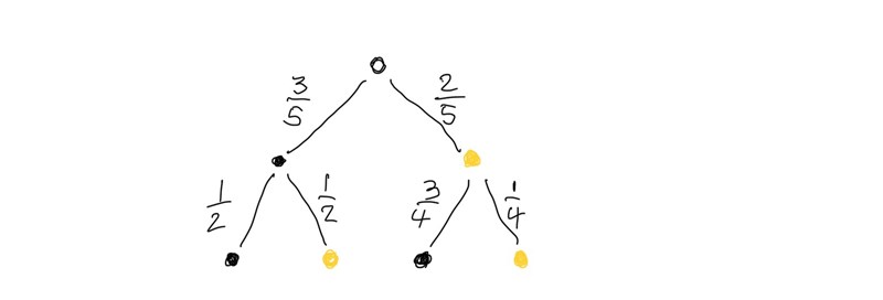 Jag ska räkna ut en uppgift där man minst ska ha en boll. Det finns fyra olika grenar på trädiagrammet, 1 av innehåller inte det gynsamma utfallet så då räknade jag ut sannolikheten på den, men vad gör man efter det för att få ut sannolikheten för de andra tre?