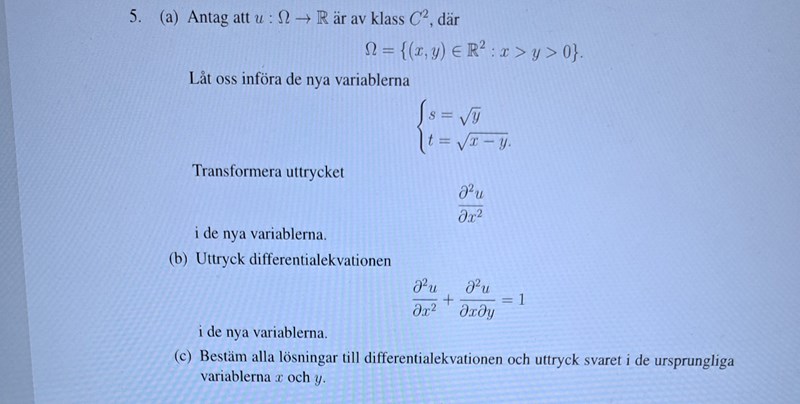 Transfomera uttrycket samt uttrycka differentialekvationen i de nya variablerna