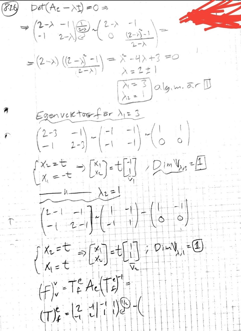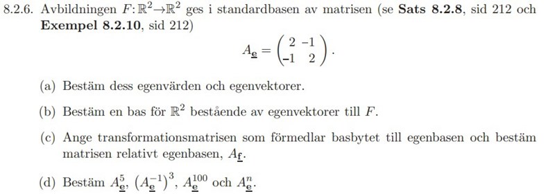 Jag har gjort rätt på (a) och (b), bara det att i facit står det att egenvektor till är och då tror jag att dom valt ?? Om ja, då behöver jag hjälp med (c)