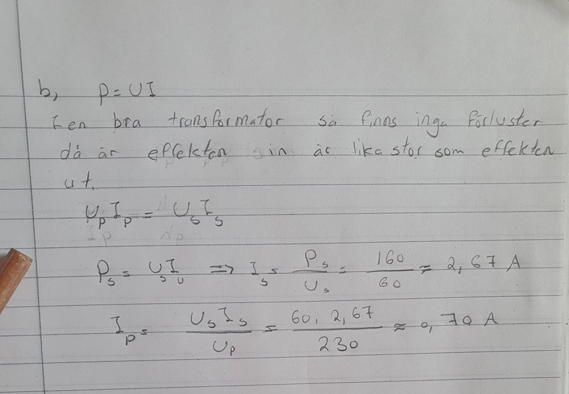 På b fick jag Is= 2,67 A och Ip=0,70. Har jag räknar rätt?