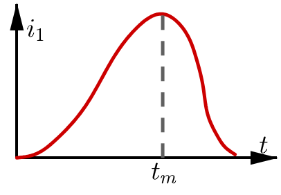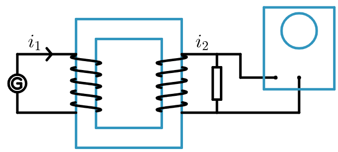 Hur ska jag tänka? En sluten kärna av mjukt järn är försedd med två lindningar så som framgår av figur 1. Primärlindningen är ansluten till en generator G, som lämnar en strömpuls. Strömmen i1i1 varierar med tiden så som framgår av figur 2.
