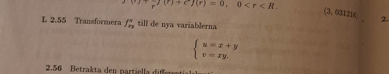 Eftersom att du har uttryck för det senare kan du ersätta parenteserna med det och sedan räkna på vad som händer då man så småningom deriverar det med avseende på u respektive v.