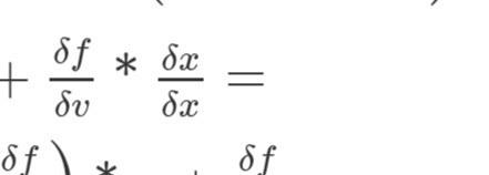 Sedan vill vi ha derivatan med avseende på u på funktionen [derivatan av f med avseende på v * y]. Detta är en sammansatt funktion, som består av multiplikationen av två funktioner, [derivatan av f med avseende på v] respektive [y]. På samma sätt som derivatan av funktionen