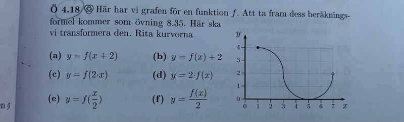 förstår mig inte på (e) den ska ju bli dubbelt så långt i sidled men i facit börjar den på 2? den ska väl börja på 1 och sluta på 12? då den börjar på 1 och slutar på 7 i uppgiften dvs blir 6 rutor 6x2=12 rutor? men dom har ju förlängt den mycket mer?