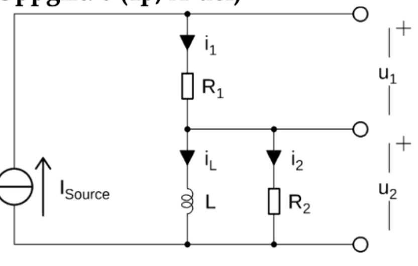 Den övre kretsen drivs av en spänningskälla, medan den undre drivs av en strömkälla.