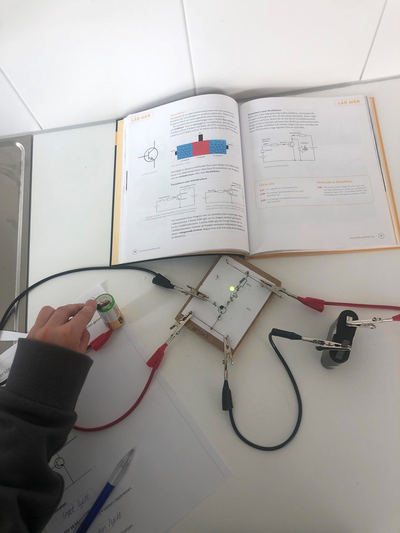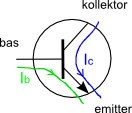 Det ser ut som du har en NPN-transistor i kretsen. Den fungerar som såhär:
