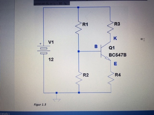 Vilken spänning har vi i punkten mellan R1 och R2 där basen är ansluten, dvs spänning på R2?
