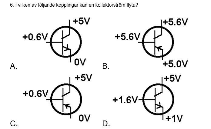Det är ju gammalmodigt med transistorer numera, men skolan brukar vara bakom flötet. Jag är lite äldre så jag borde kunna. Och då förstår jag inte vad det är för skillnad mellan A och D. Men frågan är "vilken", inte "vilka".
