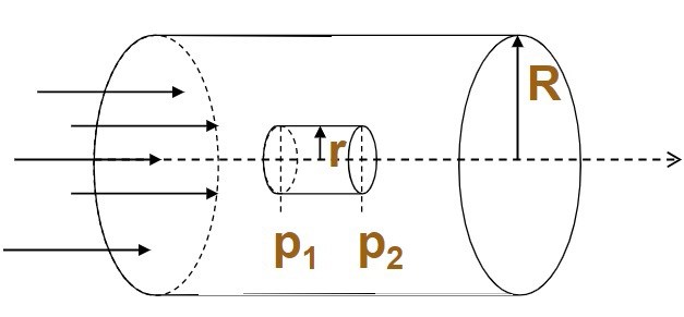 De integrerar från r=0 (dvs i rörets centrum) till r=R (dvs rörets innerdiameter).