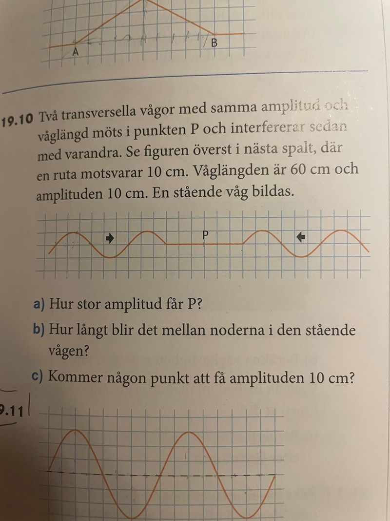 Okej, jag får svaret till (10+10) = 20cm , men hur vet man att det är just punkten P som får denna amplitud? tänk om det skulle vara en punkt som ligger en ruta till höger om P exempelvis
