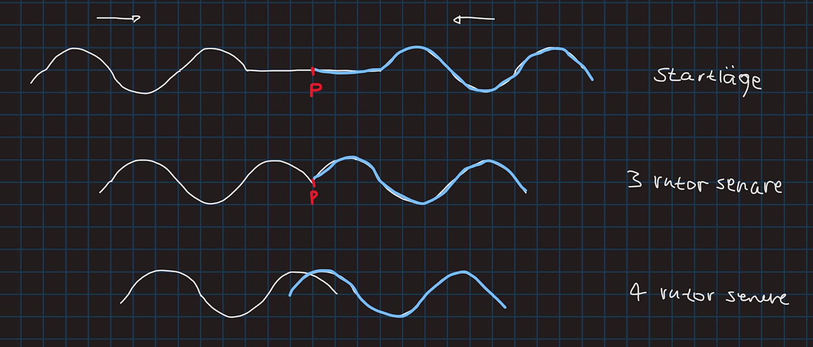I så fall hade man sagt att vågorna möts i punkten en ruta till höger om P.