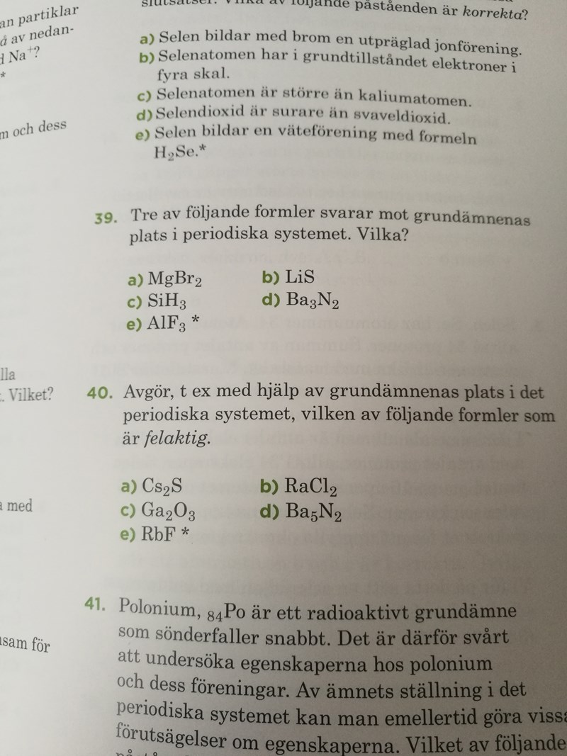 Tre av följande formler svarar mot grundämnenas plats i periodiska systemet. Vilka?