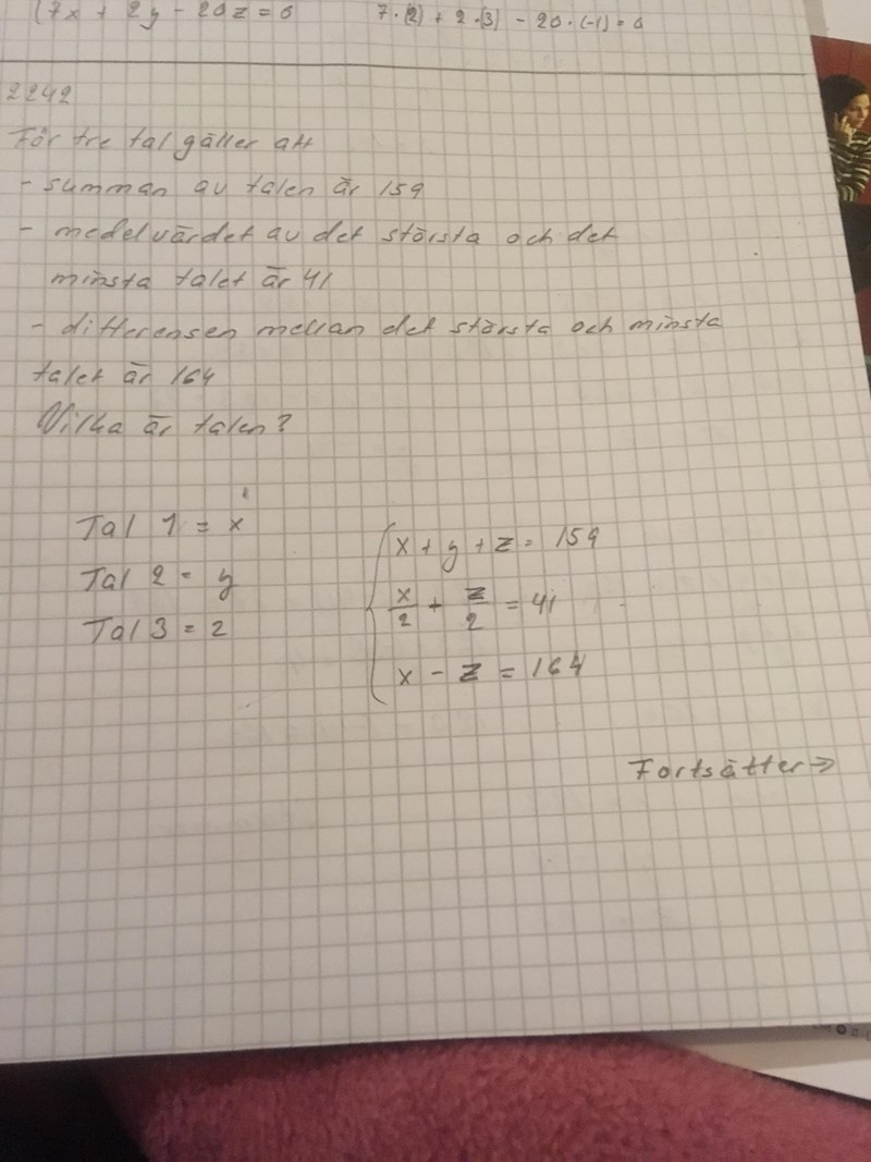 Du har ställt upp det så att z ska vara det minsta talet men du har räknat ut det som att y är det minsta talet.