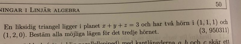 Detta fick jag sedan genom Gausseliminering till y=1+z och eftersom x+y+z=3 fick jag ekvationssystemet:
