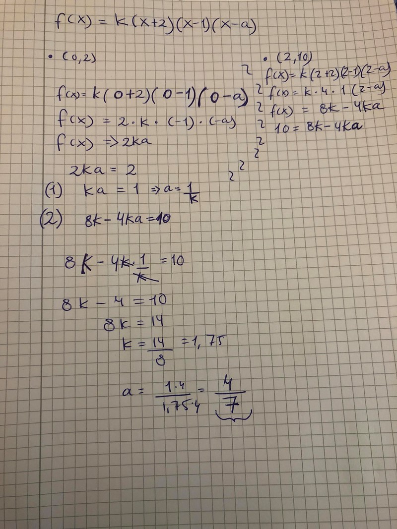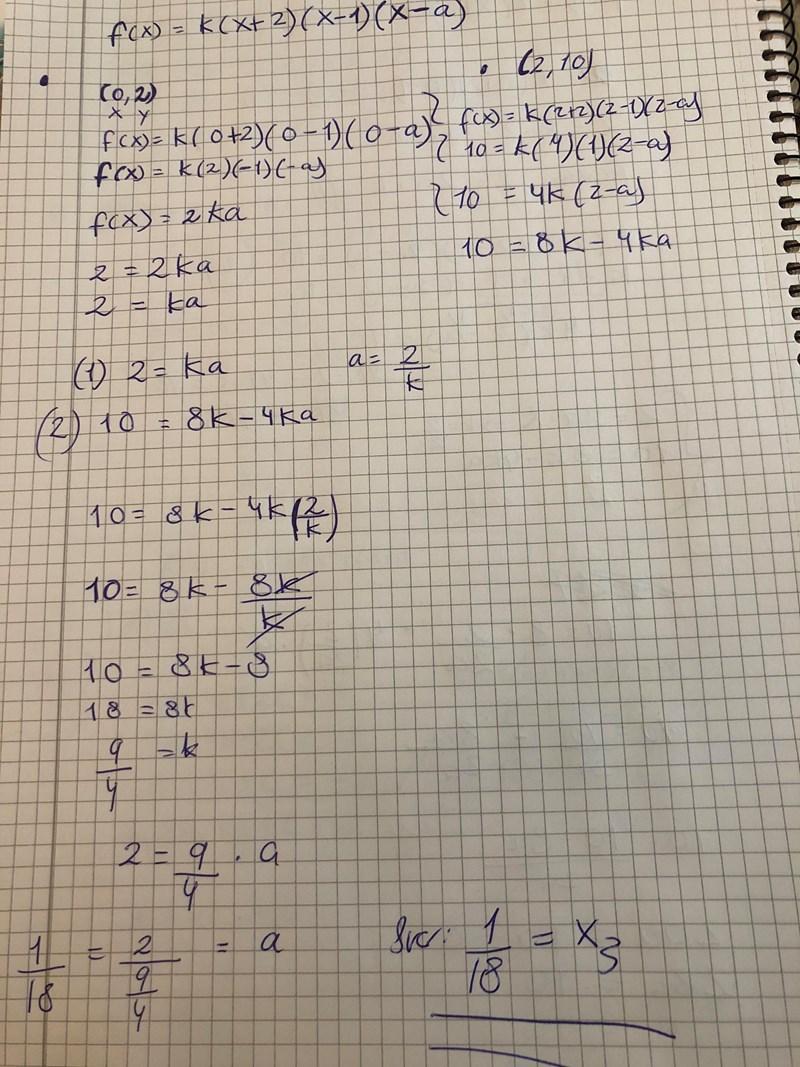 Jag har rättat felet. Hoppas att jag har utfört en korrekt beräkning :) . (Det är a vi söker efter i frågan och som står för det tredje nollstället.