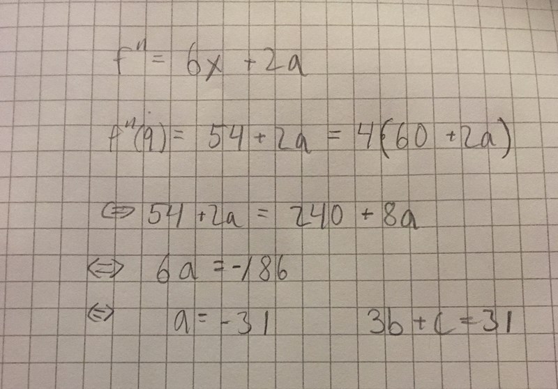 Hur får vi reda på att f''(10)=4·f''(9)f''(10)=4\cdot f''(9) utan att veta att a=-26a=-26?