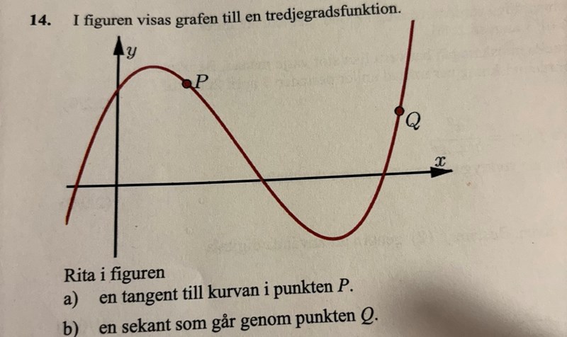 Om du vad som menas med tangent och sekant gör du en uppskattning av tangenten (med ögonmått) och ritar in den
