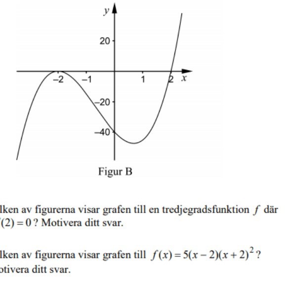 Hej. Kanske en dum fråga, men jag tänker på uppgift b och graf b (som funktionen beskriver). Varför skriver man en tredjegradsfunktion som bara har 2 nolställen sådär, med den sista parantesen (x+2) upphöjt i 2?