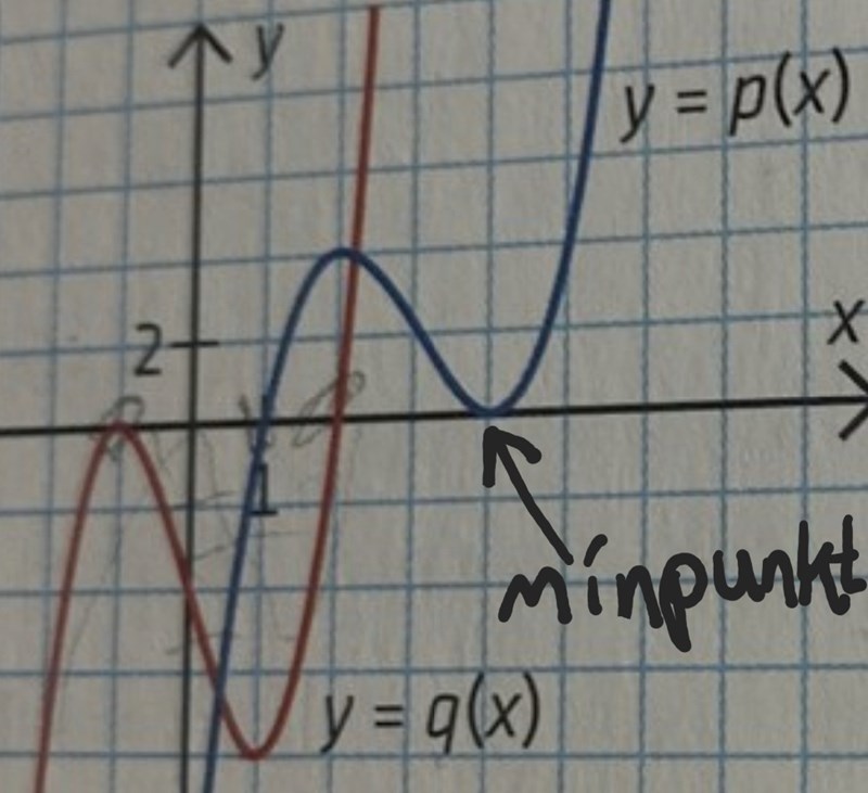 Har du gjort a-uppgiften, dvs gällande p(x) och den blåa grafen?