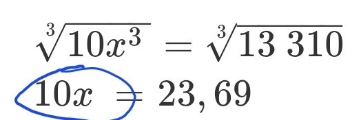 Uppgiften lyder: "I ett rätblock har sidorna 1:2:5. Rätblockets volym är 13 310 cm3.Hur långa är de tre sidorna? Volymen för ett rätblock beräknas genom att multiplicera sidorna med varandra."