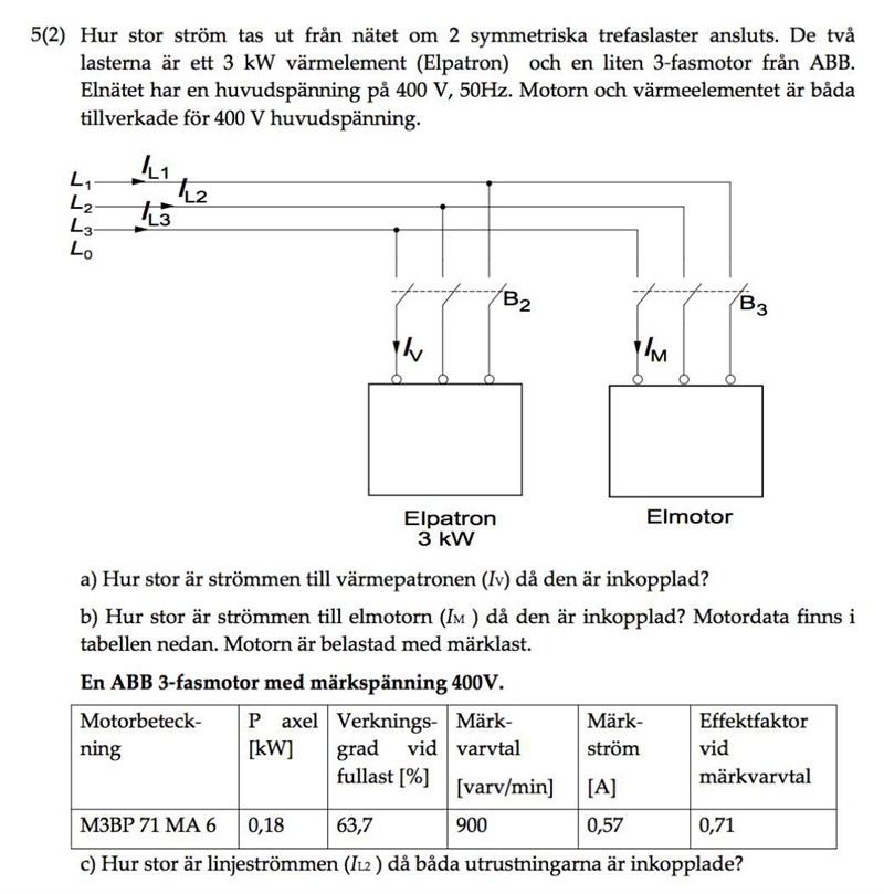 a) Det förbrukas lika mycket effekt i varje fas - dvs. 1kW.....P=U*I