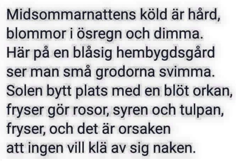 Men midsommardikten var inte min, den hade jag helt sonika snattat från fb.
