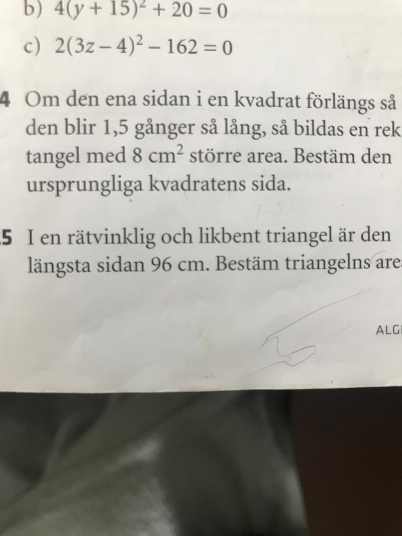 det vet man inte och jag visste redan att hypotenusan hade varit 96 cm. Jag hade frågat om likbenta triangeln