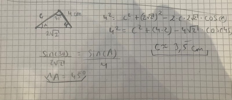 Undrar om jag har fått fram rätt vinkel på A och om jag har räknat ut rätt längden på sidan C