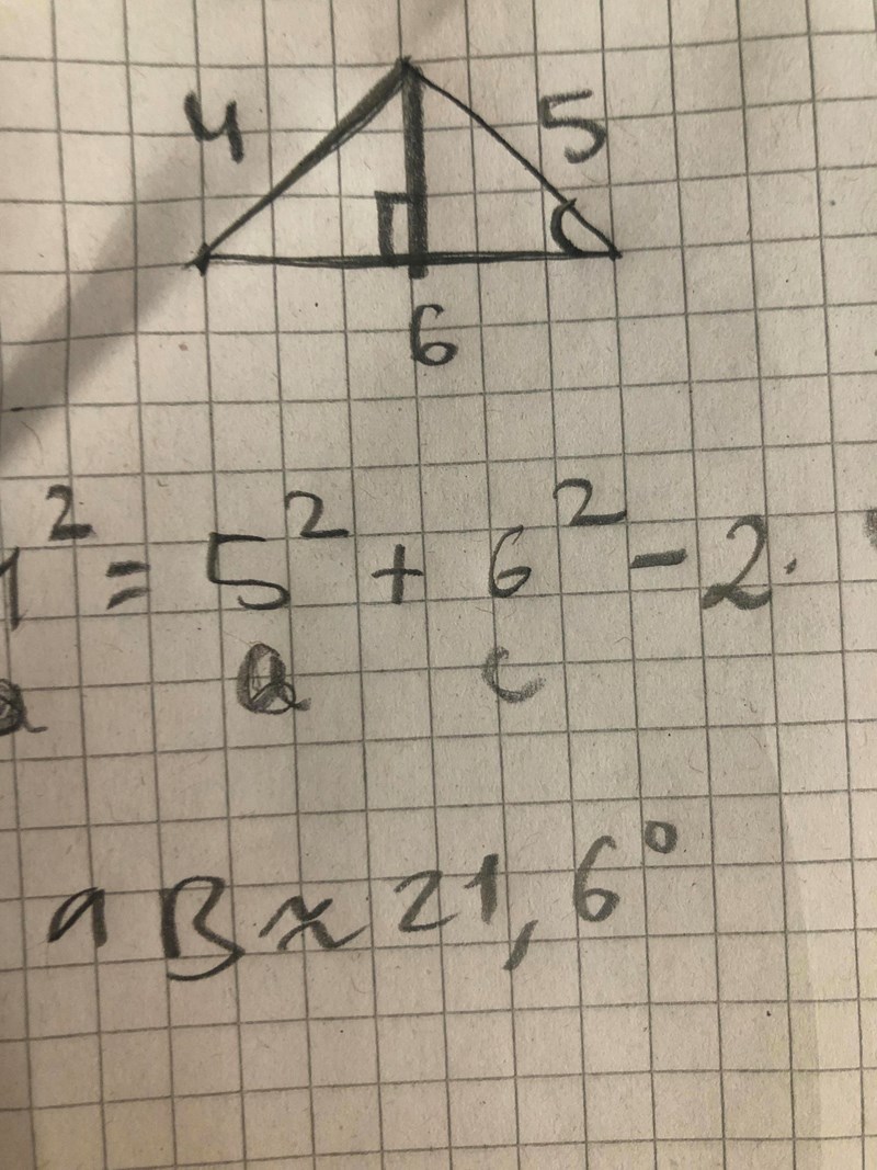 Ja men vad ska vinkeln v vara?. Vad är kateten vid basen när den delas av den vertikala linjen?