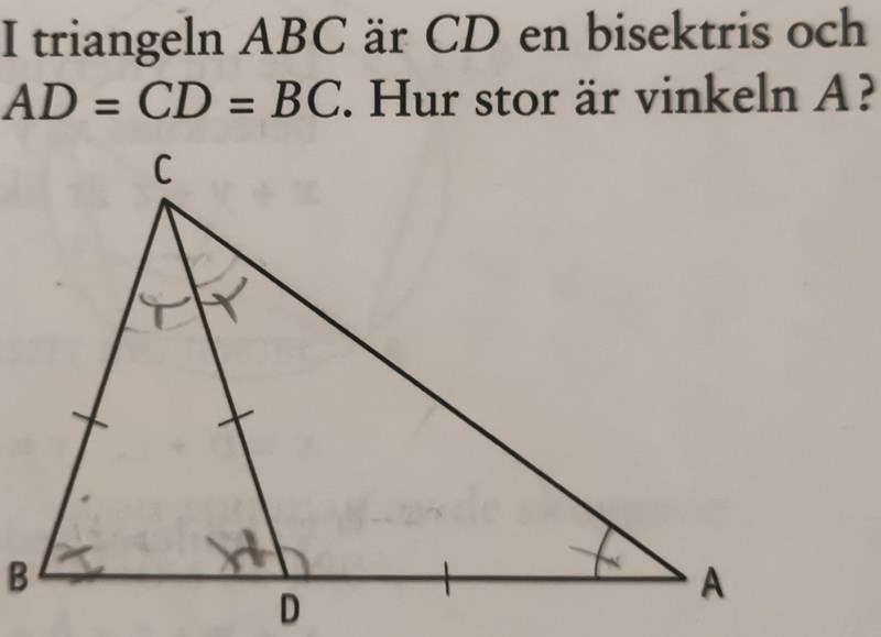 Förstår du varför är vinkeln BDC = 2*A ?