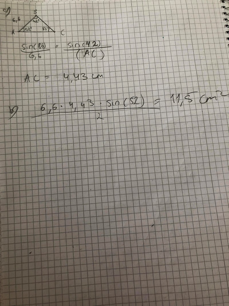det första jag ser är att din bild är inte korrekt. Först och främst är vinkeln du kallar 86 grader 42 grader.