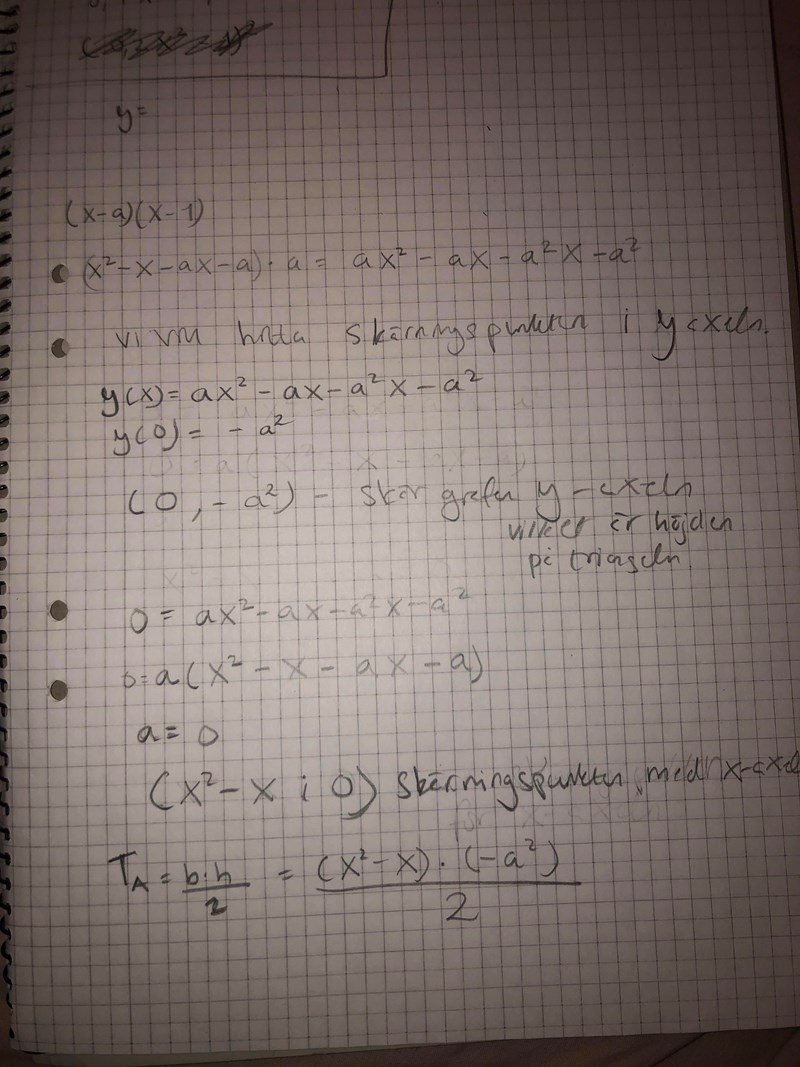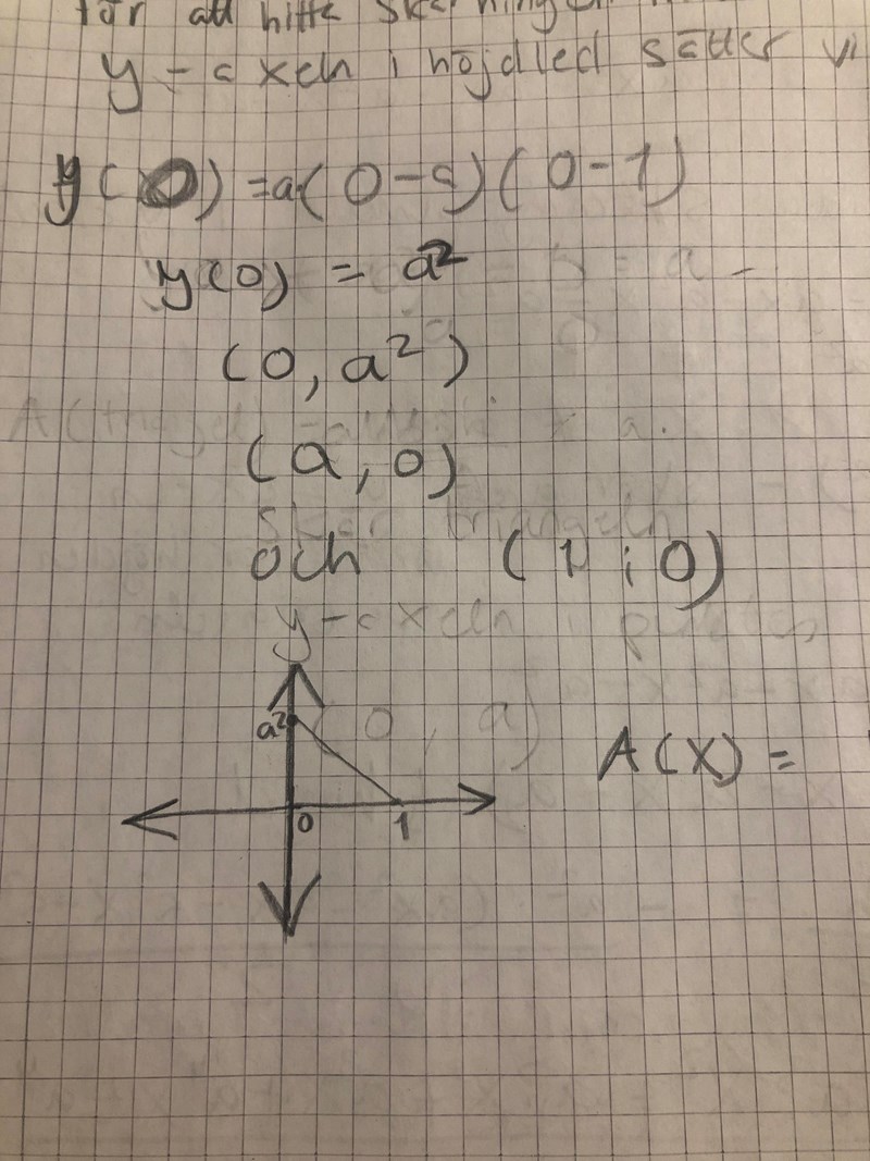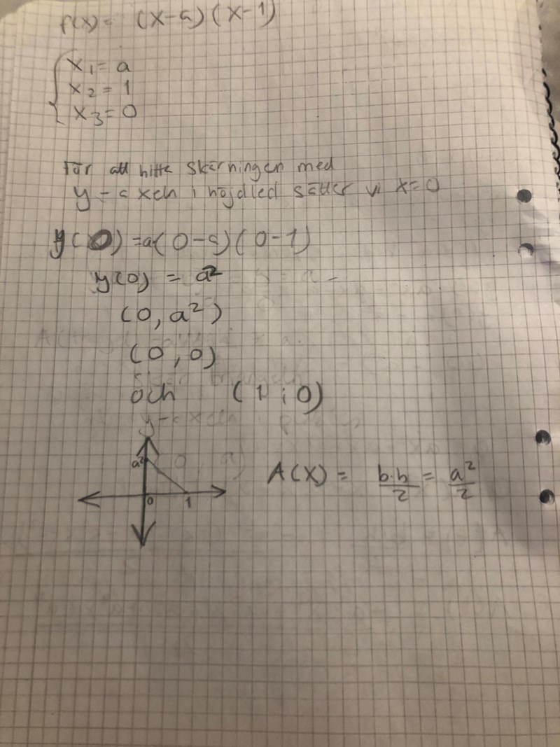 Grafen skär alltså y-axeln i (0, a^2). Det är triangekns ena hörn.