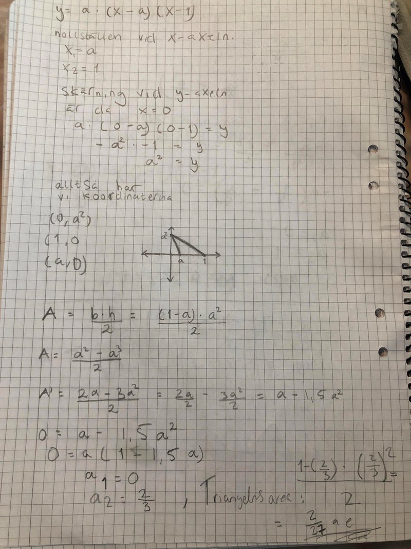 Hur som helst . Så långt kommer jag. Nästa steg blir att derivera för att hitta minimi värdet på a.