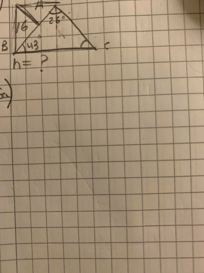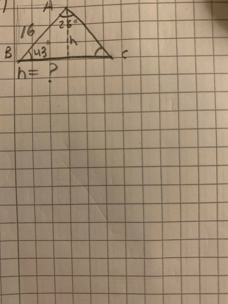 ”I triangeln ABC är A=26*,B=43* och AB=16cm. Hur lång är höjden mot sidan AB?”