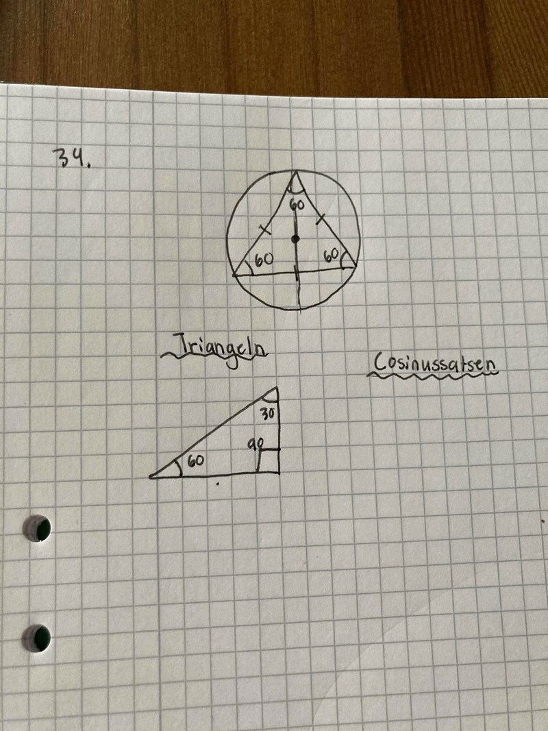 Hej! Vet ej hur jag ska komma vidare försökte rita upp halva triangel och gjorde antaganden att vinklarna är 60 grader