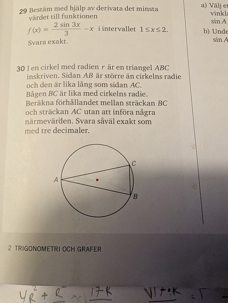 Triangel i cirkel, beräkna förhållandet mellan sidor