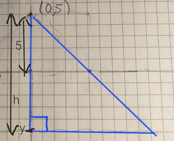 Jag vet inte vad jag ska räkna ut? Är det en koordinat eller är det kateten i triangeln? Jag får nu 10 i kvadrat =5 i kvadrat + h i kvadrat. det här blev roten ur 75 för höjden... Är det y? Åh, andra sidan är ju den högsta hörnet på 5 och jag är ju 5 nedanför, så y borde ju vara -10? Jag förstår inte vad jag gör....